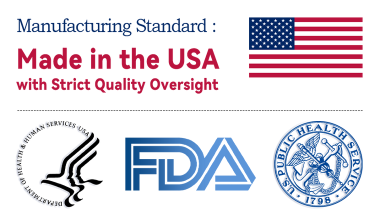 | Fabricado en EE. UU. bajo normas de la FDA y certificación GMP | ||